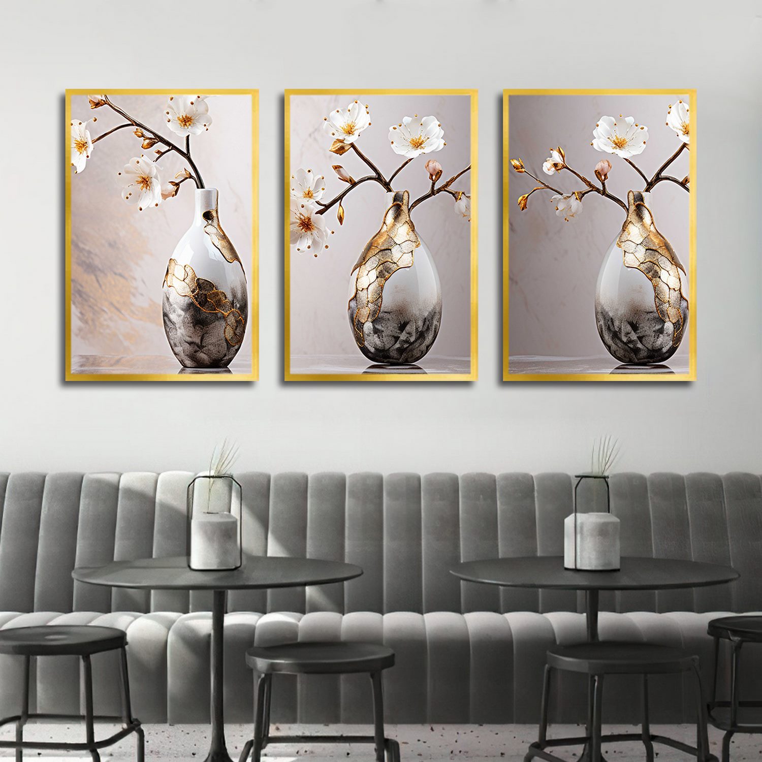 تابلو شاسی بکلیت طرح نقاشی مدرن خطوط مدل SH-2429 مجموعه 3 عددی