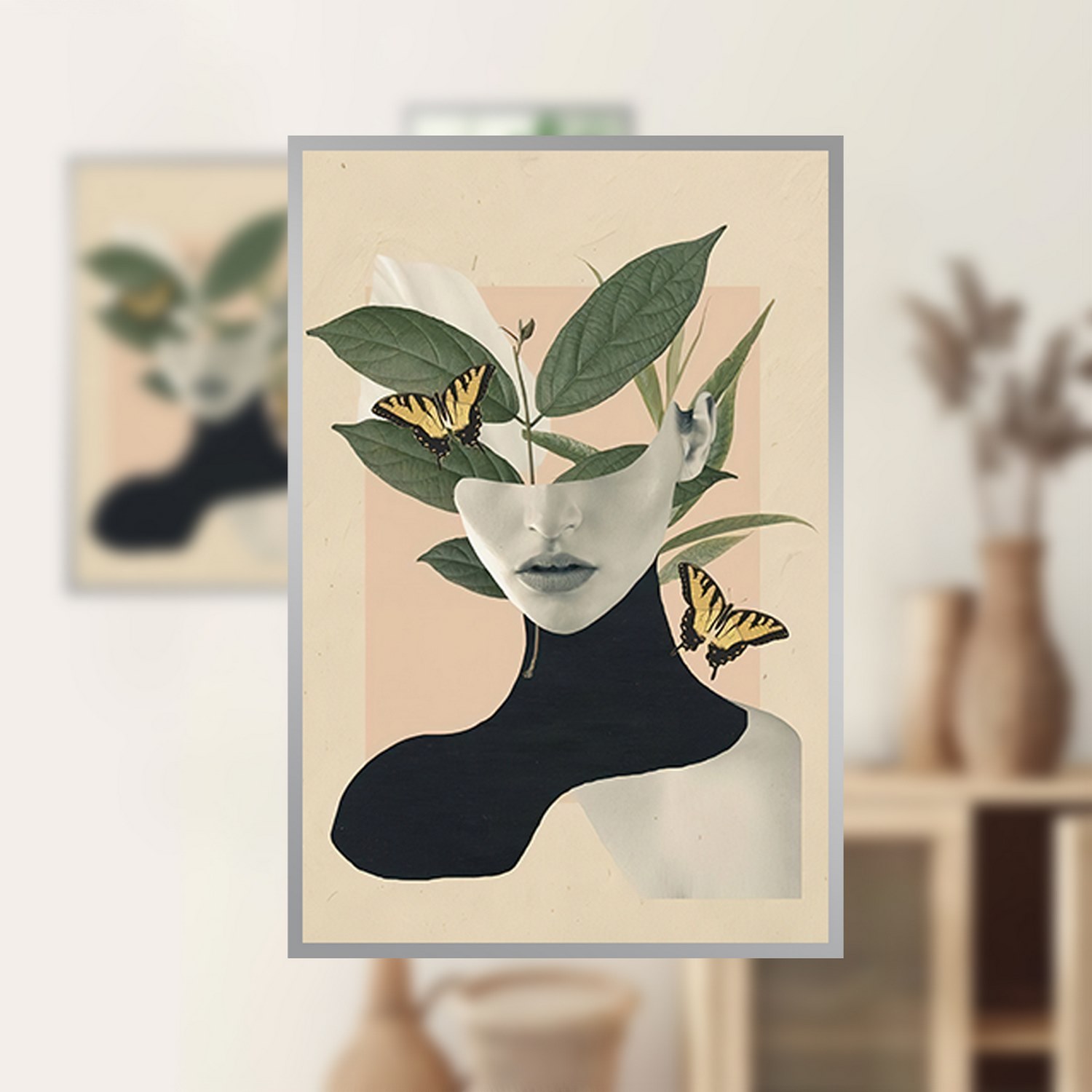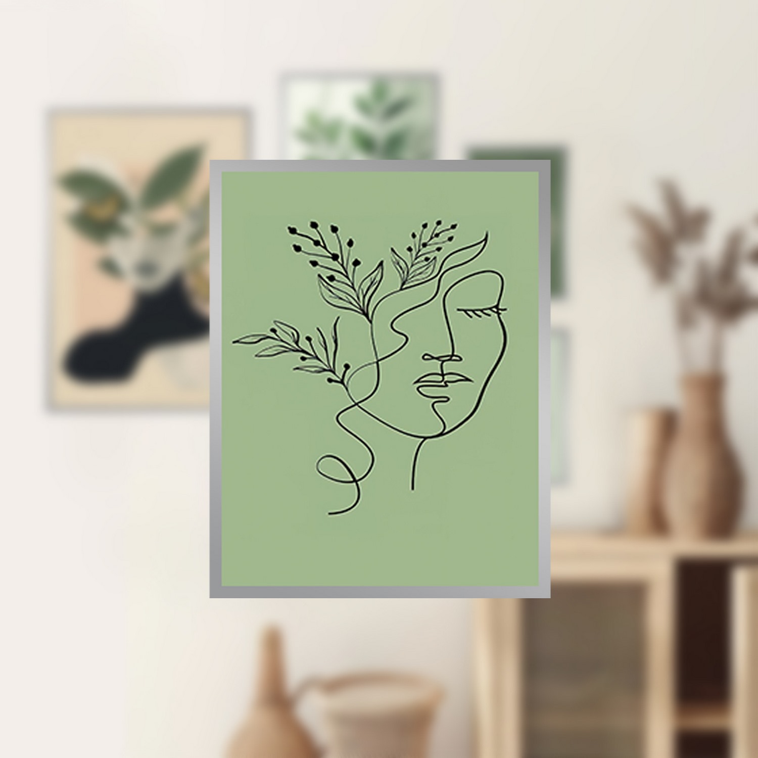 اگر به دنبال یک مجموعه تابلو چند تکه با طرح مدرن و زیبا می باشید پیشنهاد ما تابلو دکوراتیو چندتکه با طرح نقاشی مینیمال چهره و برگ به همراه فریم PVC و شیشه سبک 2 میلیمتری می باشد.چاپ عکس این تابلو لمینت شده و ماندگاری رنگ آن بالا و مقاوم در برابر رطوبت می باشد. با این طرح شما میتوانید دکوری زیبا را با هزینه بسیار کم برای منزل یا محل کار خود به ارمغان بیاورید