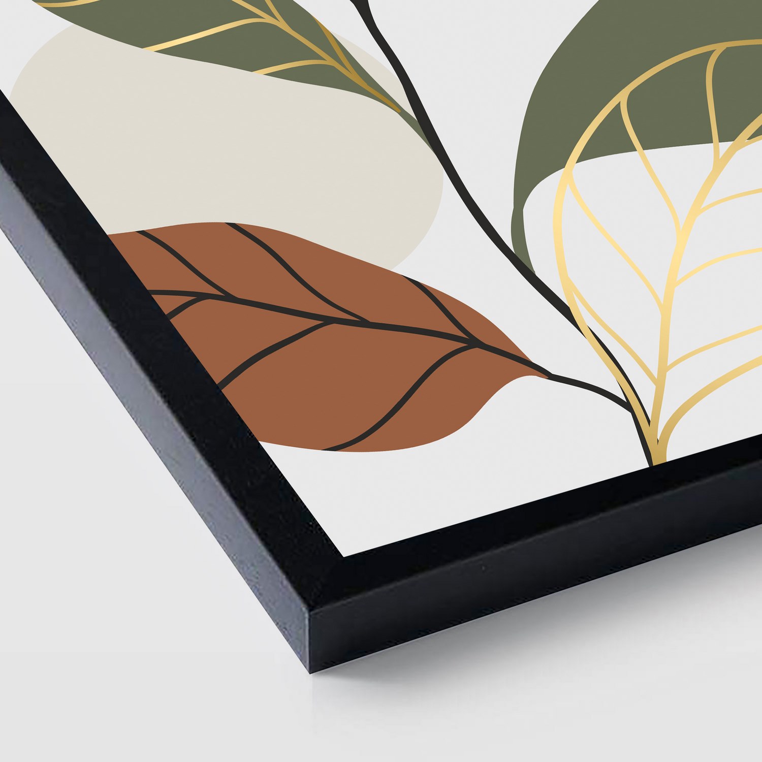 تابلو دکوراتیو چندتکه با طرح نقاشی برگ به همراه فریم PVC و شیشه سبک 2 میلیمتری .چاپ عکس این تابلو لمینت شده و ماندگاری رنگ آن بالا و مقاوم در برابر رطوبت می باشد.