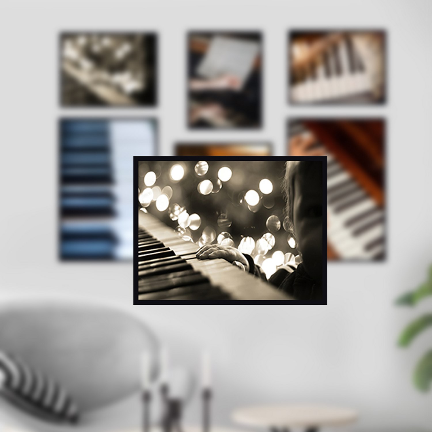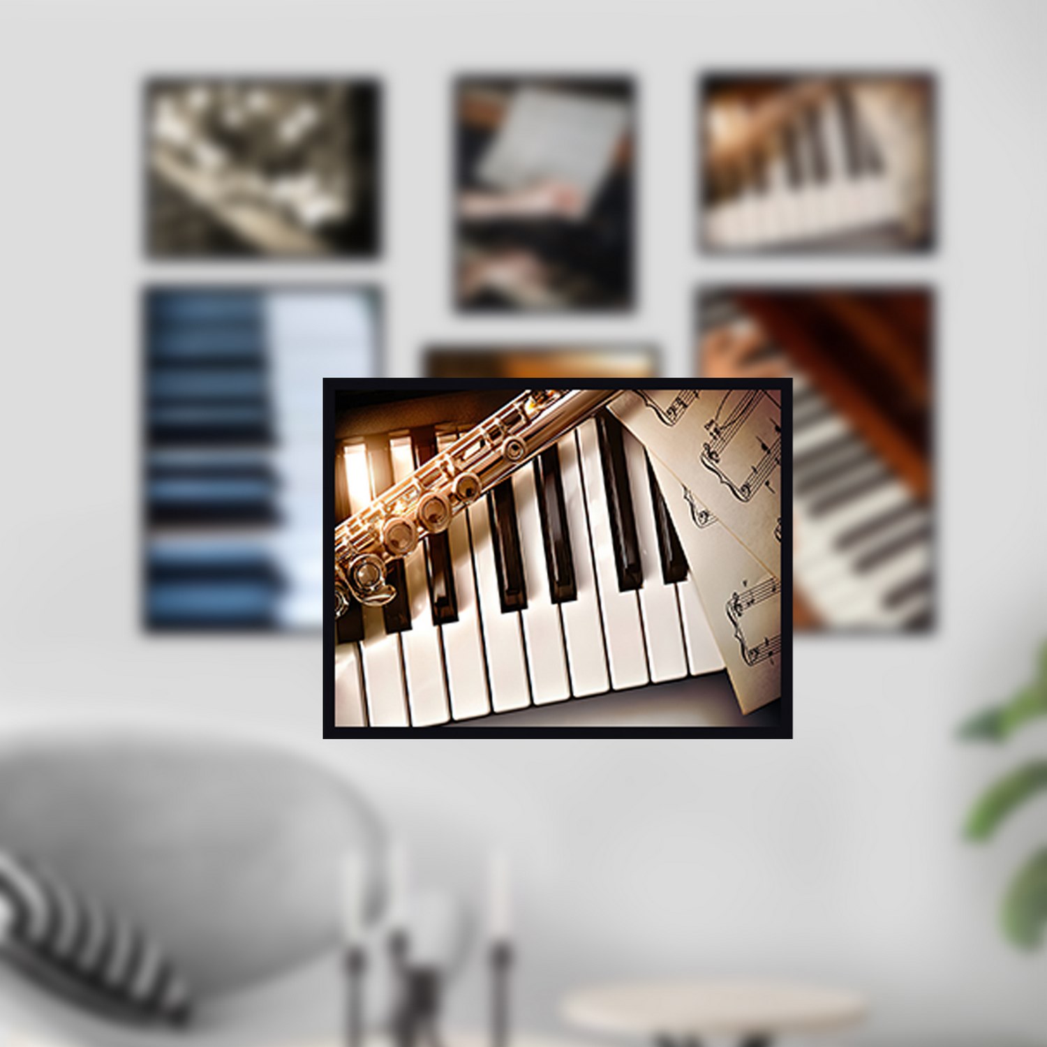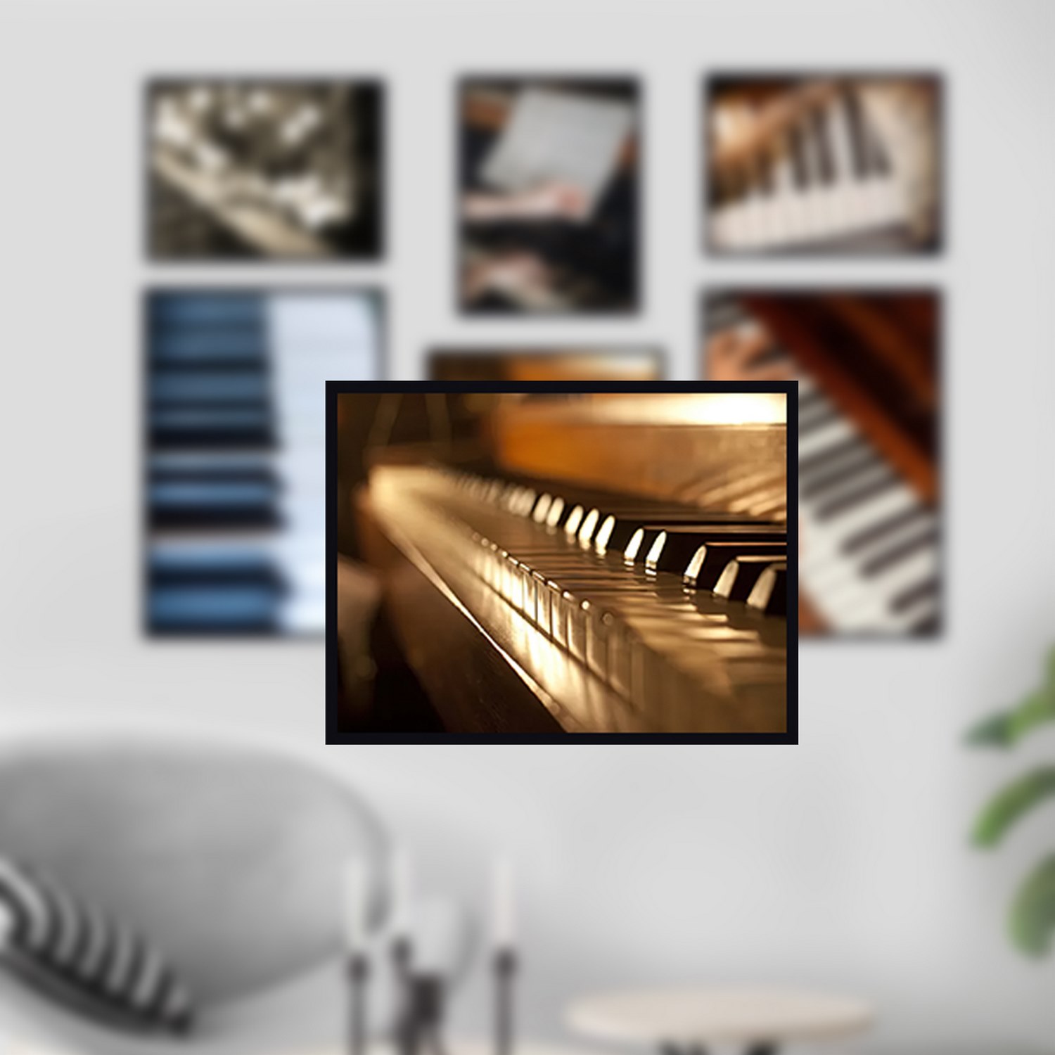 تابلو دکوراتیو چندتکه با طرح ساز موسیقی پیانو به همراه فریم PVC و شیشه سبک 2 میلیمتری .چاپ عکس این تابلو لمینت شده و ماندگاری رنگ آن بالا و مقاوم در برابر رطوبت می باشد.