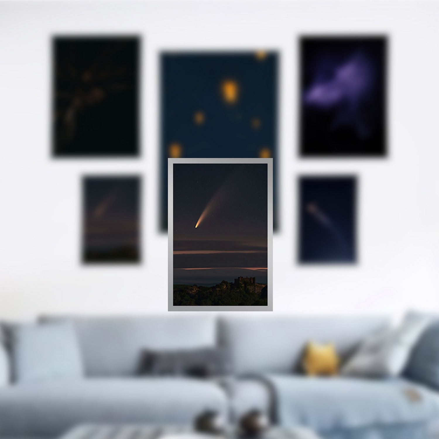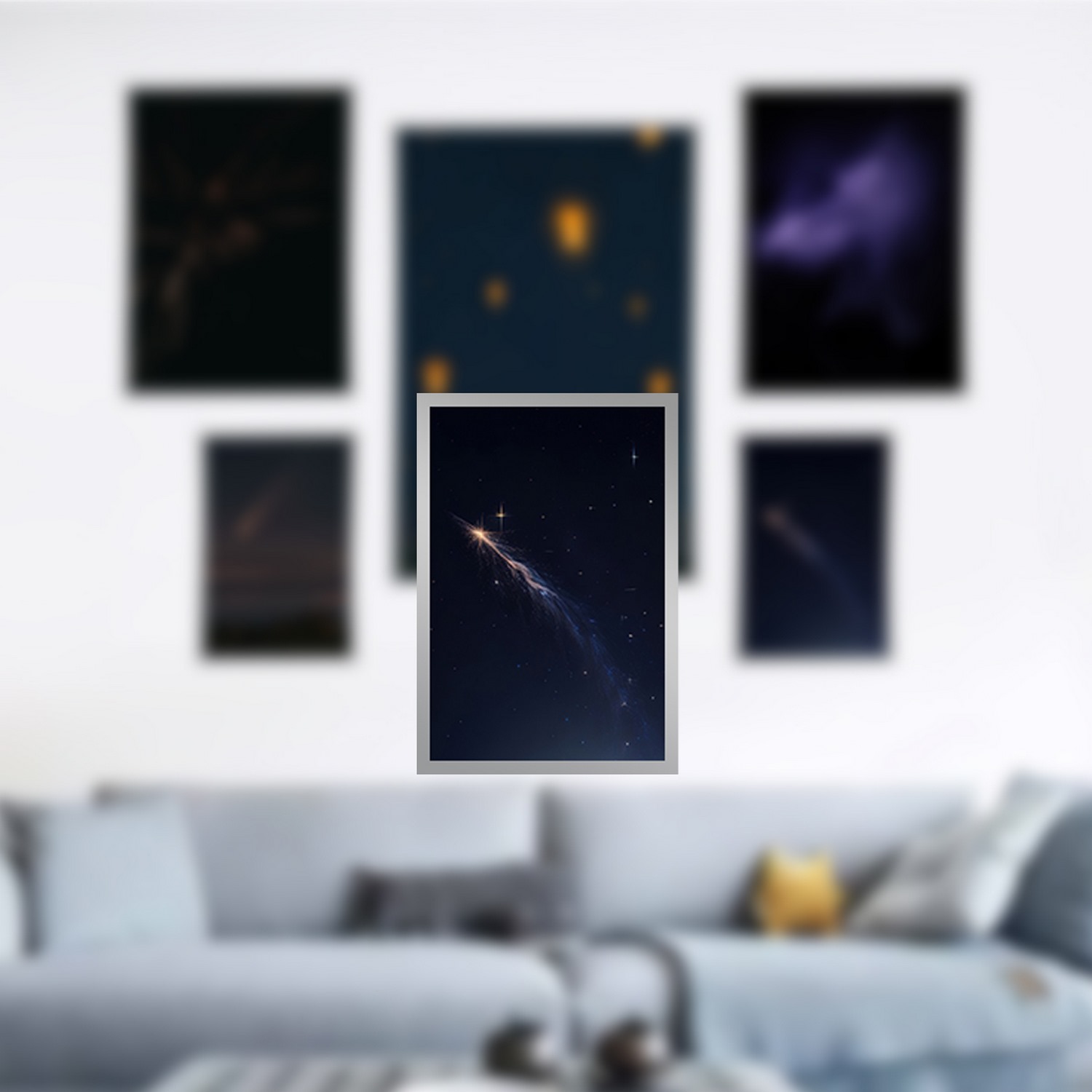 اگر به دنبال یک مجموعه تابلو چند تکه با طرح مدرن و زیبا می باشید پیشنهاد ما تابلو دکوراتیو چندتکه با طرح کهکشان و شهاب سنگ و بالن به همراه فریم PVC و شیشه سبک 2 میلیمتری می باشد.چاپ عکس این تابلو لمینت شده و ماندگاری رنگ آن بالا و مقاوم در برابر رطوبت می باشد. با این طرح شما میتوانید دکوری زیبا را با هزینه بسیار کم برای منزل یا محل کار خود به ارمغان بیاورید