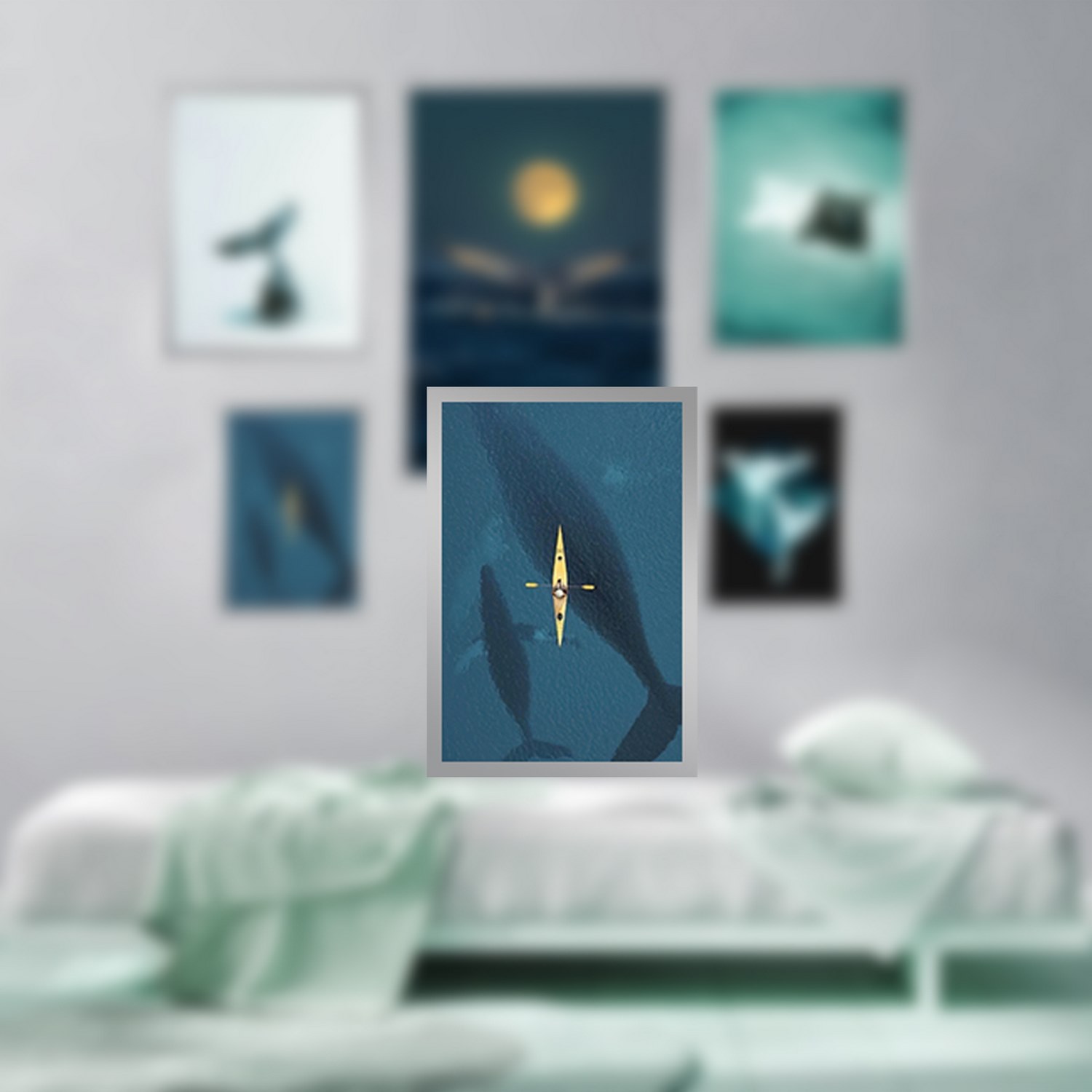 تابلو بکلیت طرح طبیعت دریا و دلفین مدل SI-3025 مجموعه 5 عددی
