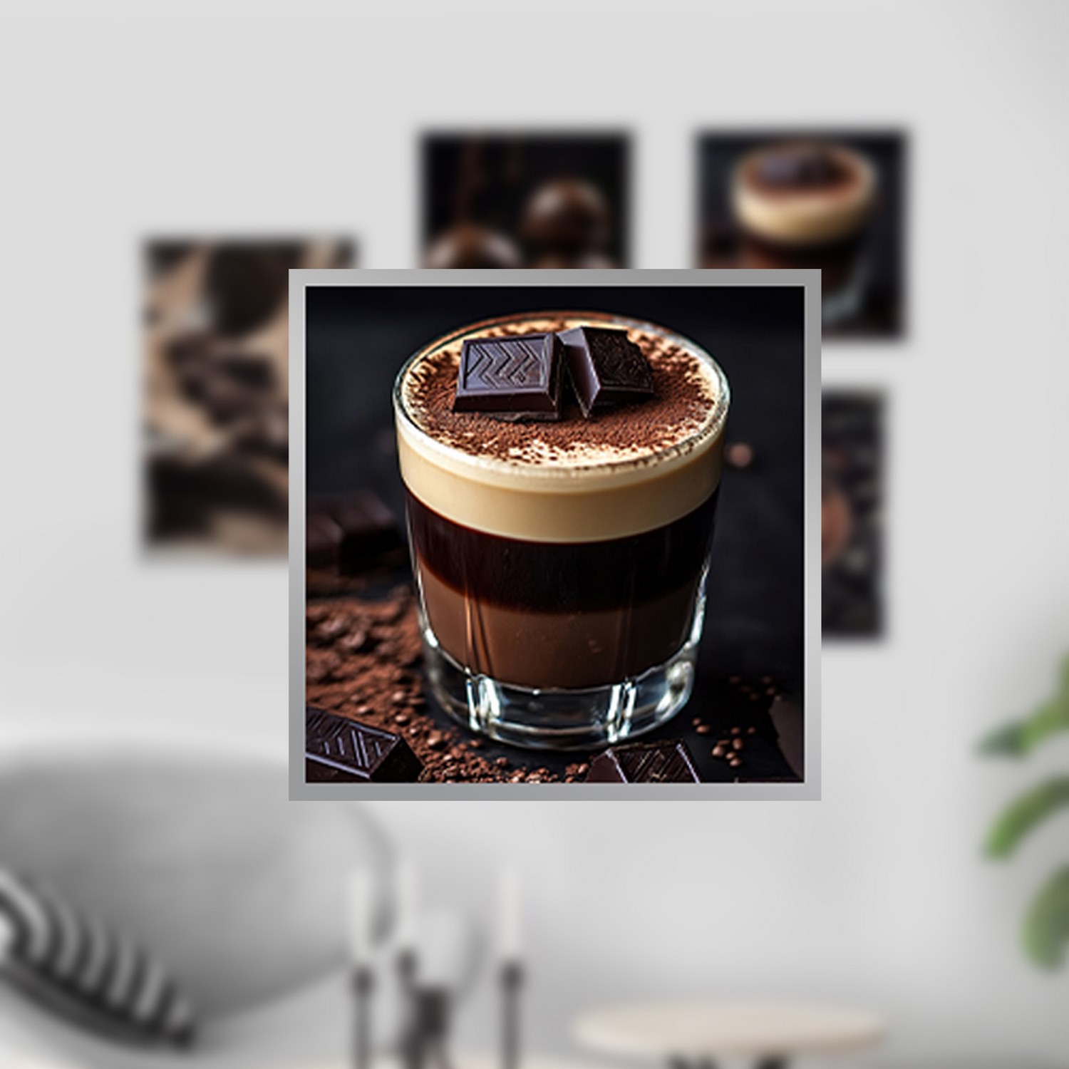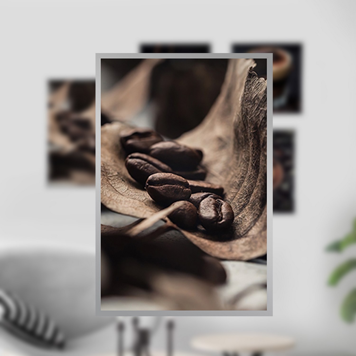تابلو دکوراتیو چندتکه با طرح کافه و قهوه به همراه فریم PVC و شیشه سبک 2 میلیمتری .چاپ عکس این تابلو لمینت شده و ماندگاری رنگ آن بالا و مقاوم در برابر رطوبت می باشد.