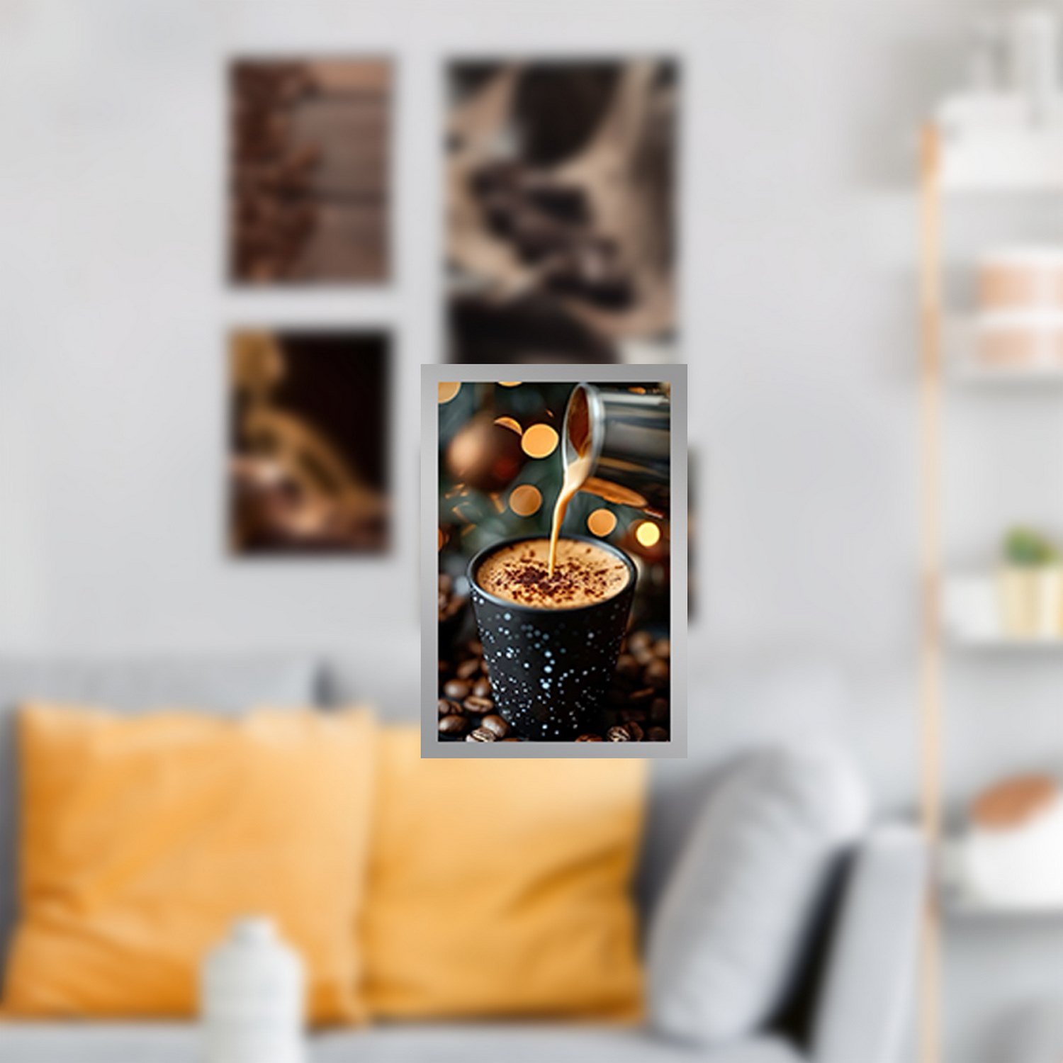 اگر به دنبال یک مجموعه تابلو چند تکه با طرح مدرن و زیبا می باشید پیشنهاد ما تابلو دکوراتیو چندتکه با طرح نوشیدنی قهوه و کافه به همراه فریم PVC و شیشه سبک 2 میلیمتری می باشد.چاپ عکس این تابلو لمینت شده و ماندگاری رنگ آن بالا و مقاوم در برابر رطوبت می باشد. با این طرح شما میتوانید دکوری زیبا را با هزینه بسیار کم برای منزل یا محل کار خود به ارمغان بیاورید
