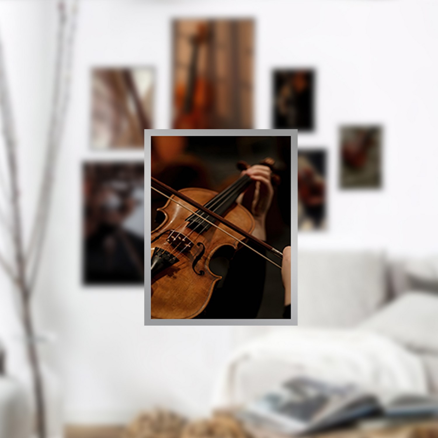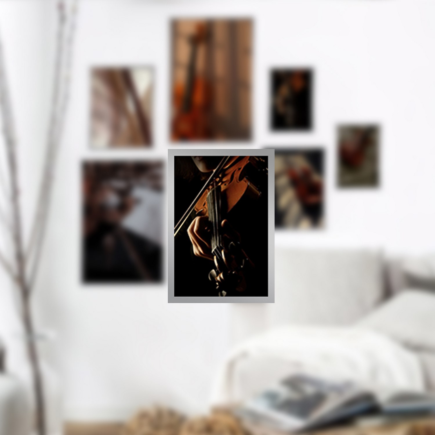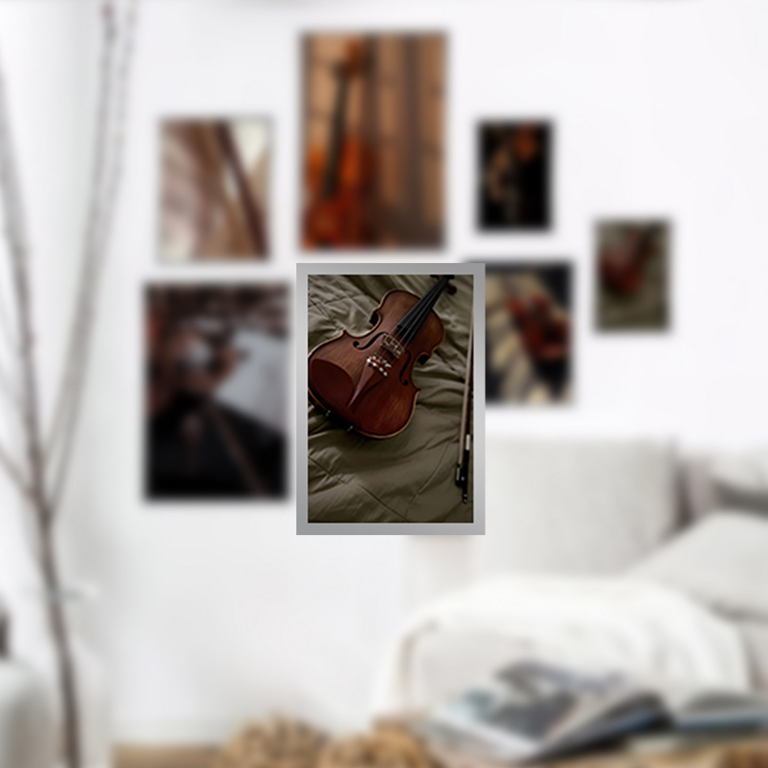 اگر به دنبال یک مجموعه تابلو چند تکه با طرح مدرن و زیبا می باشید پیشنهاد ما تابلو دکوراتیو چندتکه با طرح ساز موسیقی و ویولن به همراه فریم PVC و شیشه سبک 2 میلیمتری می باشد.چاپ عکس این تابلو لمینت شده و ماندگاری رنگ آن بالا و مقاوم در برابر رطوبت می باشد. با این طرح شما میتوانید دکوری زیبا را با هزینه بسیار کم برای منزل یا محل کار خود به ارمغان بیاورید