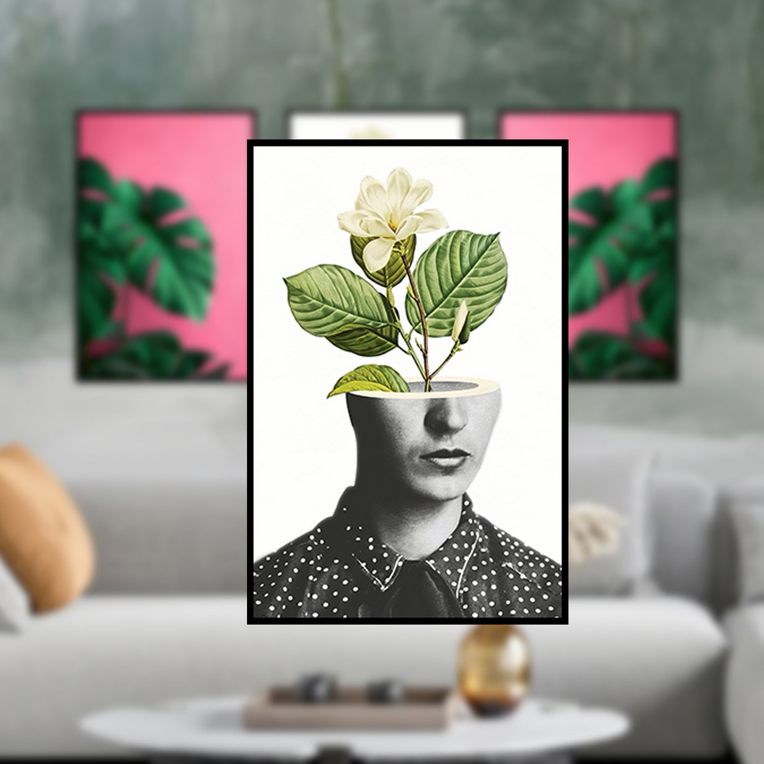 اگر به دنبال یک مجموعه تابلو چند تکه با طرح مدرن و زیبا می باشید پیشنهاد ما تابلو دکوراتیو چندتکه با طرح چهره و برگ انجیری به همراه فریم PVC و شیشه سبک 2 میلیمتری می باشد.چاپ عکس این تابلو لمینت شده و ماندگاری رنگ آن بالا و مقاوم در برابر رطوبت می باشد. با این طرح شما میتوانید دکوری زیبا را با هزینه بسیار کم برای منزل یا محل کار خود به ارمغان بیاورید